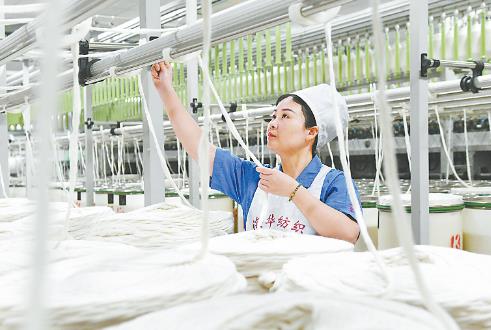3月5日,位于博愛(ài)經(jīng)濟(jì)技術(shù)開(kāi)發(fā)區(qū)的焦作市匯百川紡織有限公司工人在紡紗。春節(jié)假期后,該企業(yè)搶抓機(jī)遇、鼓足干勁,開(kāi)足馬力抓訂單、拓銷(xiāo)路、忙生產(chǎn),奮力沖刺首季“開(kāi)門(mén)紅”。