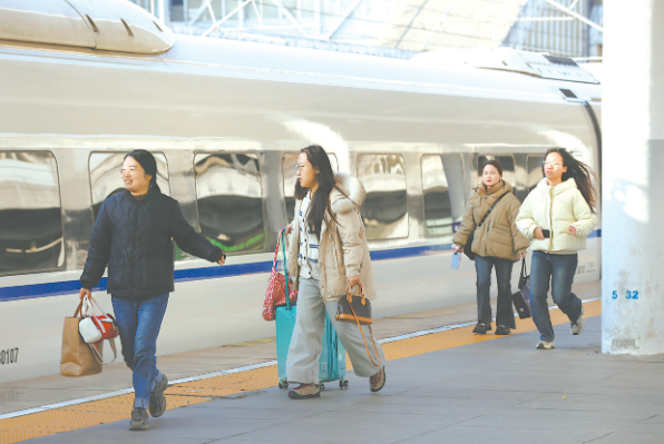 圖② 春運(yùn)開(kāi)啟,旅客們踏上返鄉(xiāng)的列車(chē)。