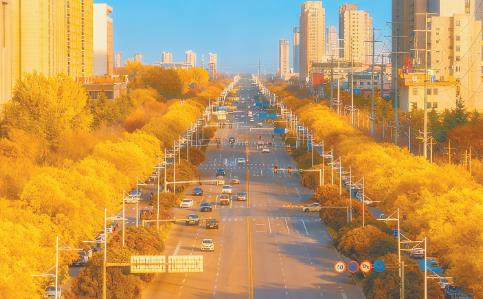 11月15日,世紀(jì)路兩側(cè)的白蠟樹(shù)換上金黃“盛裝”。高大樹(shù)冠交織成蔭,金黃葉片隨風(fēng)輕舞,讓這條街道變身為一道富有詩(shī)意的秋日風(fēng)景線。
