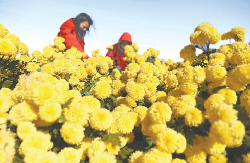 11月18日,河南省焦作市溫縣黃河街道下石井村一家懷藥種植專業(yè)合作社員工在采收懷菊花。時下,各地農(nóng)民搶抓農(nóng)時,加緊開展采收、晾曬、銷售等工作,一片繁忙景象。