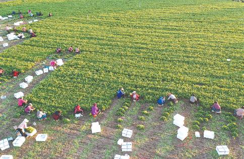 11月21日,沁陽市王曲鄉(xiāng)里村的農(nóng)民在田間收割香菜(無人機(jī)照片)。入冬以來,寒意漸濃,各地農(nóng)民搶抓農(nóng)時(shí),進(jìn)行農(nóng)作物種植、田間管護(hù)和采收等農(nóng)事活動,田間地頭一派繁忙景象。