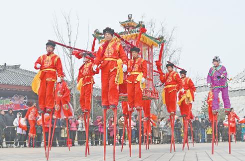 3月3日,民間藝人在河南省焦作市非遺精品項目展演活動上表演“高抬火轎”。當日是農(nóng)歷正月十五,各地舉辦豐富多彩的活動,歡慶元宵節(jié)。