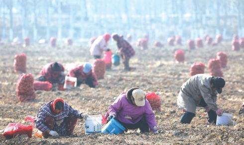 12月6日,河南省焦作市溫縣黃河街道東張王莊村農(nóng)民在田間收獲懷地黃。