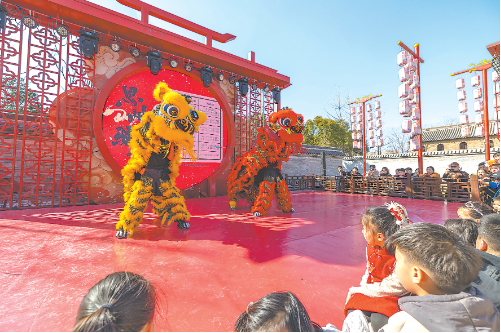 圖①② 恩州驛古街游人如織、年味十足,市民、游客駐足觀看舞獅表演。