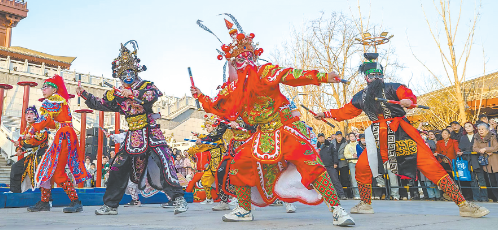 圖⑤⑥ 焦作新春非遺民俗游園會,游客在觀看黃河飛龍、英歌舞等非遺民俗表演。