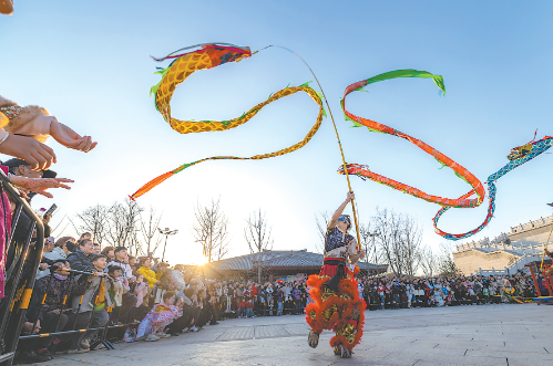 春節(jié)期間,山陽區(qū)文旅活動異彩紛呈。焦作新春非遺民俗游園會以及恩州驛古街、陶三文化藝術(shù)園等文旅片區(qū),舞獅、上刀山下火海、火壺、英歌舞、黃河飛龍等非遺表演吸引八方來客駐足欣賞,熱烈的氛圍、精彩的表演,讓城市里年味更加濃郁。