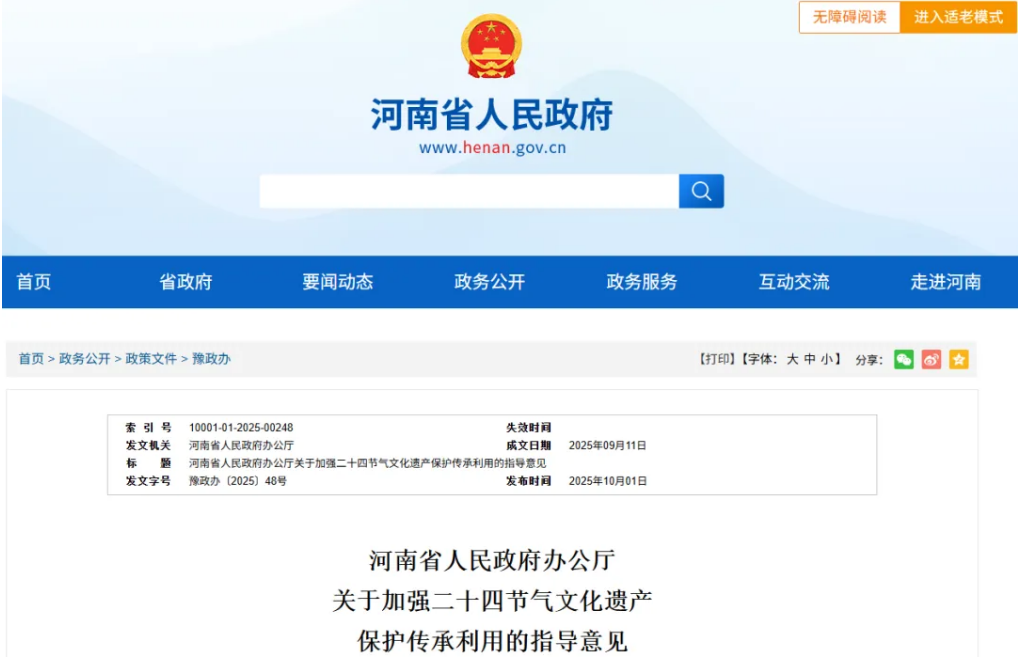 為加強(qiáng)二十四節(jié)氣文化遺產(chǎn)保護(hù)傳承利用,深化中華文明交流互鑒,推動節(jié)氣文化繁榮興盛,加快建設(shè)文旅強(qiáng)省,經(jīng)省政府同意,現(xiàn)提出以下指導(dǎo)意見,請認(rèn)真貫徹落實(shí)。