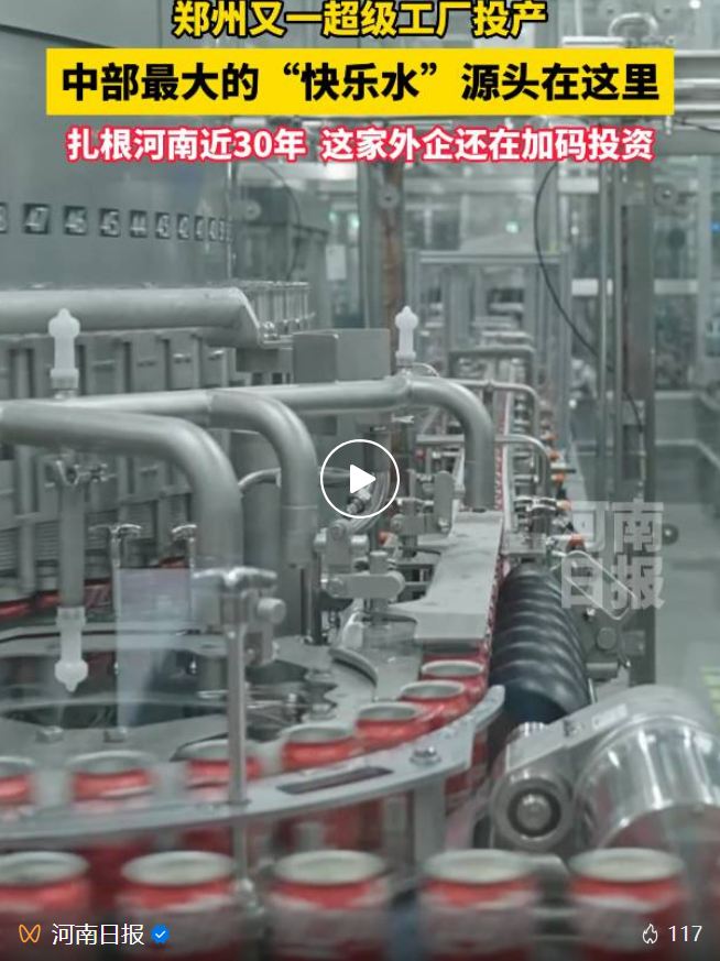 10月16日,跨國(guó)公司巨頭太古可口可樂在鄭州的新工廠正式投產(chǎn)。這家新廠總投資超9億元,年產(chǎn)在現(xiàn)有基礎(chǔ)上大幅增長(zhǎng)150%,突破100萬噸,成為河南省首個(gè)百萬噸級(jí)飲料超級(jí)工廠。