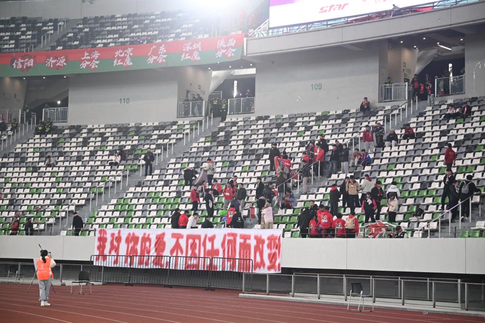 △12月6日,足協(xié)杯決賽賽后,河南隊(duì)球迷在看臺上。新華社記者 李嘉南 攝