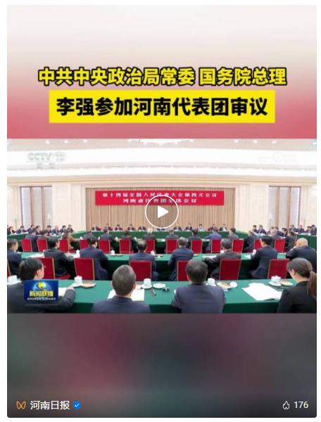 中共中央政治局常委、國務(wù)院總理李強參加河南代表團審議。他說,過去一年河南深入貫徹習(xí)近平總書記重要指示精神和黨中央決策部署,主要指標(biāo)增速位居前列,向新向優(yōu)趨勢明顯。新的一年,要在服務(wù)統(tǒng)一大市場建設(shè)上力求新作為,在完善現(xiàn)代化產(chǎn)業(yè)體系上塑造新優(yōu)勢,在推進新型城鎮(zhèn)化上探索新路徑,在文旅融合發(fā)展上打造新名片。