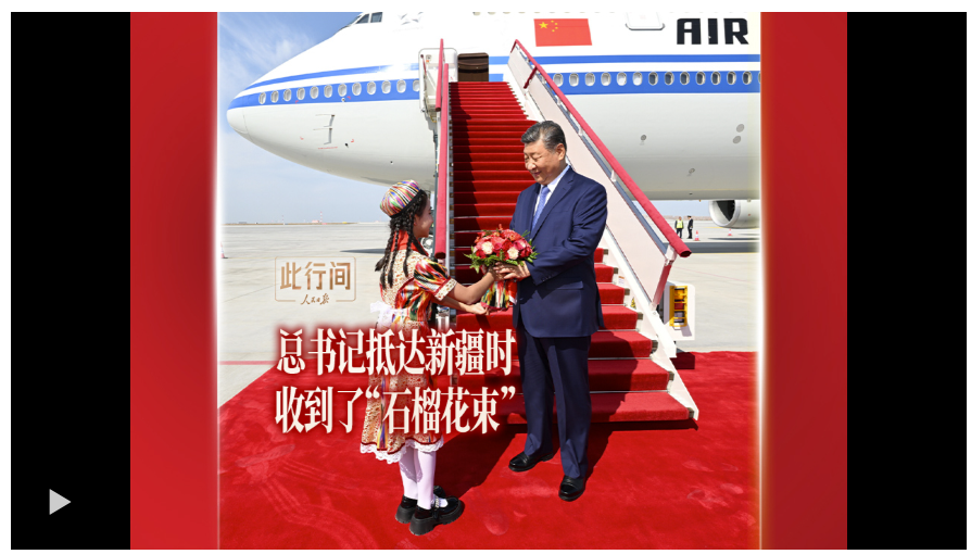 此行間·總書記抵達(dá)新疆時收到了“石榴花束”
