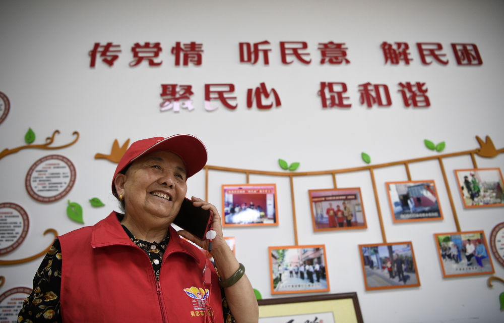 2005年,寧夏吳忠市回族婦女王蘭花從社區(qū)居委會主任崗位退休后,與6名老同事成立了“王蘭花熱心小組”。她帶領(lǐng)團隊二十年如一日堅持志愿服務(wù),每天奔走在社區(qū)各個角落,照顧空巢老人、留守兒童,化解矛盾糾紛,幫助解決社區(qū)居民的操心事、煩心事、揪心事,用無私奉獻溫暖著每一個人的心田,成為社區(qū)志愿服務(wù)“領(lǐng)頭羊”,吸引越來越多的人加入志愿服務(wù)隊伍。這是2021年6月16日,王蘭花在社區(qū)工作站與居民通電話。