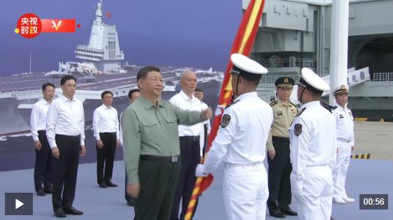 我國(guó)第一艘電磁彈射型航空母艦福建艦入列授旗儀式5日在海南三亞某軍港舉行。中共中央總書記、國(guó)家主席、中央軍委主席習(xí)近平出席入列授旗儀式并登艦視察。