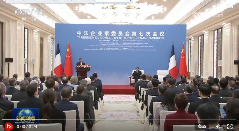 12月4日中午,國(guó)家主席習(xí)近平在北京同法國(guó)總統(tǒng)馬克龍共同出席中法企業(yè)家委員會(huì)第七次會(huì)議閉幕式并致辭。