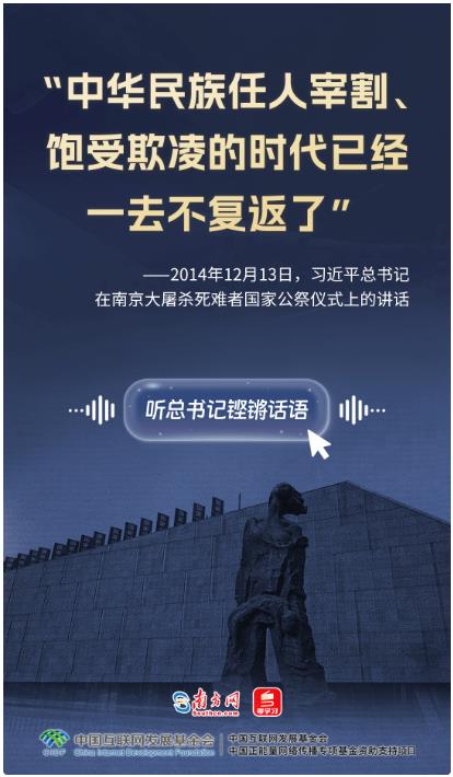 11年前的這一天,在首次南京大屠殺死難者國(guó)家公祭儀式上,習(xí)近平總書記強(qiáng)調(diào):我們?yōu)槟暇┐笸罋⑺离y者舉行公祭儀式,是要喚起每一個(gè)善良的人們對(duì)和平的向往和堅(jiān)守,而不是要延續(xù)仇恨。
