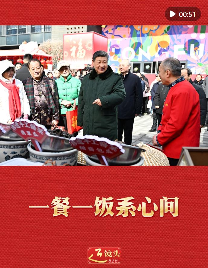 從社區(qū)食堂到農(nóng)家灶臺(tái),從商業(yè)排檔到校園餐廳,群眾吃得好不好、食品價(jià)格貴不貴……一句句關(guān)切,一聲聲問詢,總書記細(xì)致入微的關(guān)懷,映照人民領(lǐng)袖愛人民的初心。