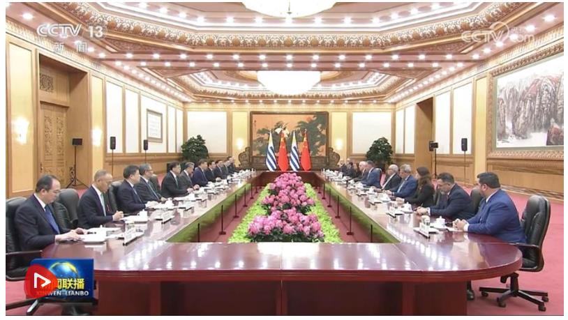 訪問期間,雙方發(fā)表《中華人民共和國和烏拉圭東岸共和國關(guān)于深化中烏全面戰(zhàn)略伙伴關(guān)系的聯(lián)合聲明》。