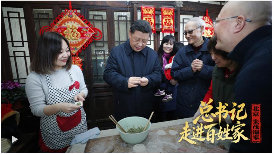 2019年春節(jié)前夕,習(xí)近平總書記走進(jìn)北京市東城區(qū)草廠四條胡同。在居民朱茂錦家里,總書記與他們一家邊包水餃邊聊家常。總書記笑著說:“我家里也愛包茴香餡的。多年來因工作關(guān)系我沒包過餃子了,你們看,越包越好。我們的生活也是這樣,越過越好!”